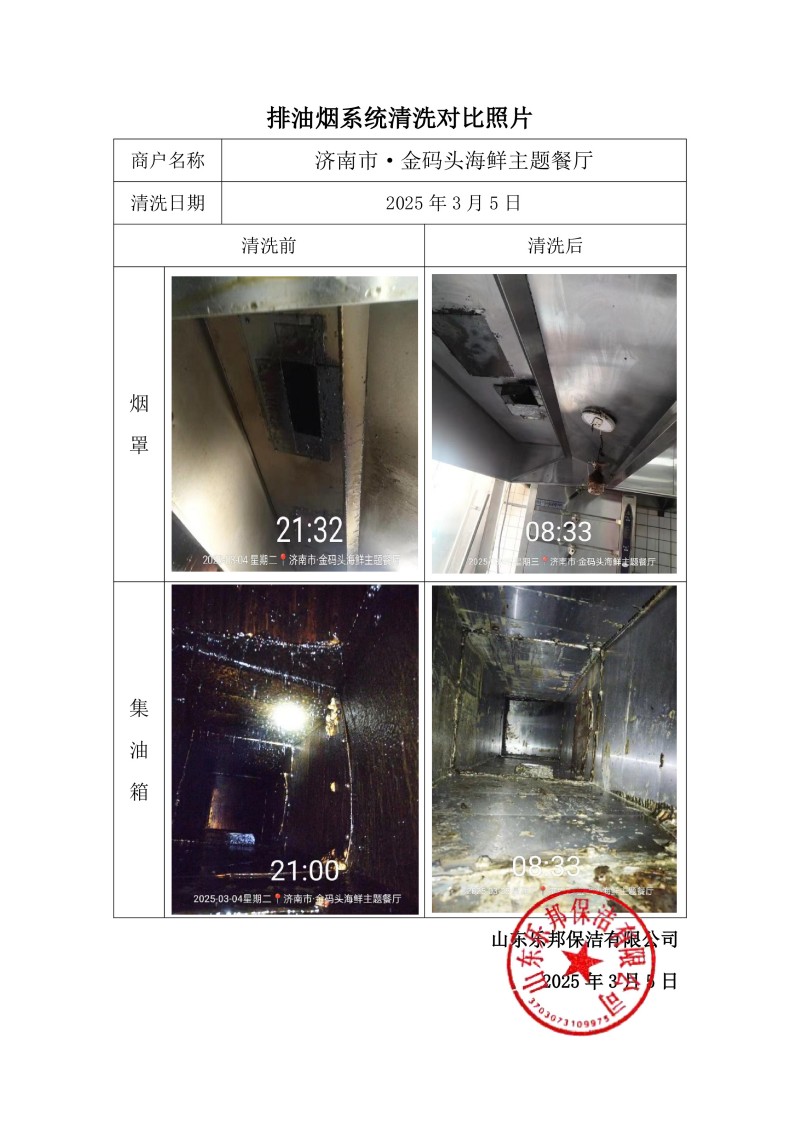 濟(jì)南市·金碼頭海鮮主題餐廳清洗報告25.3.5