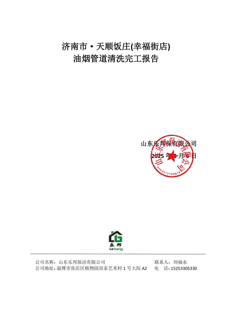 濟(jì)南市·天順飯莊(幸福街店)清洗報(bào)告25.3.6