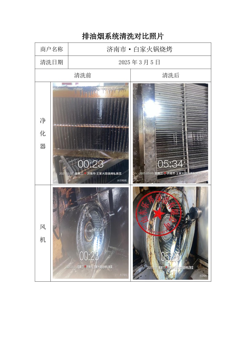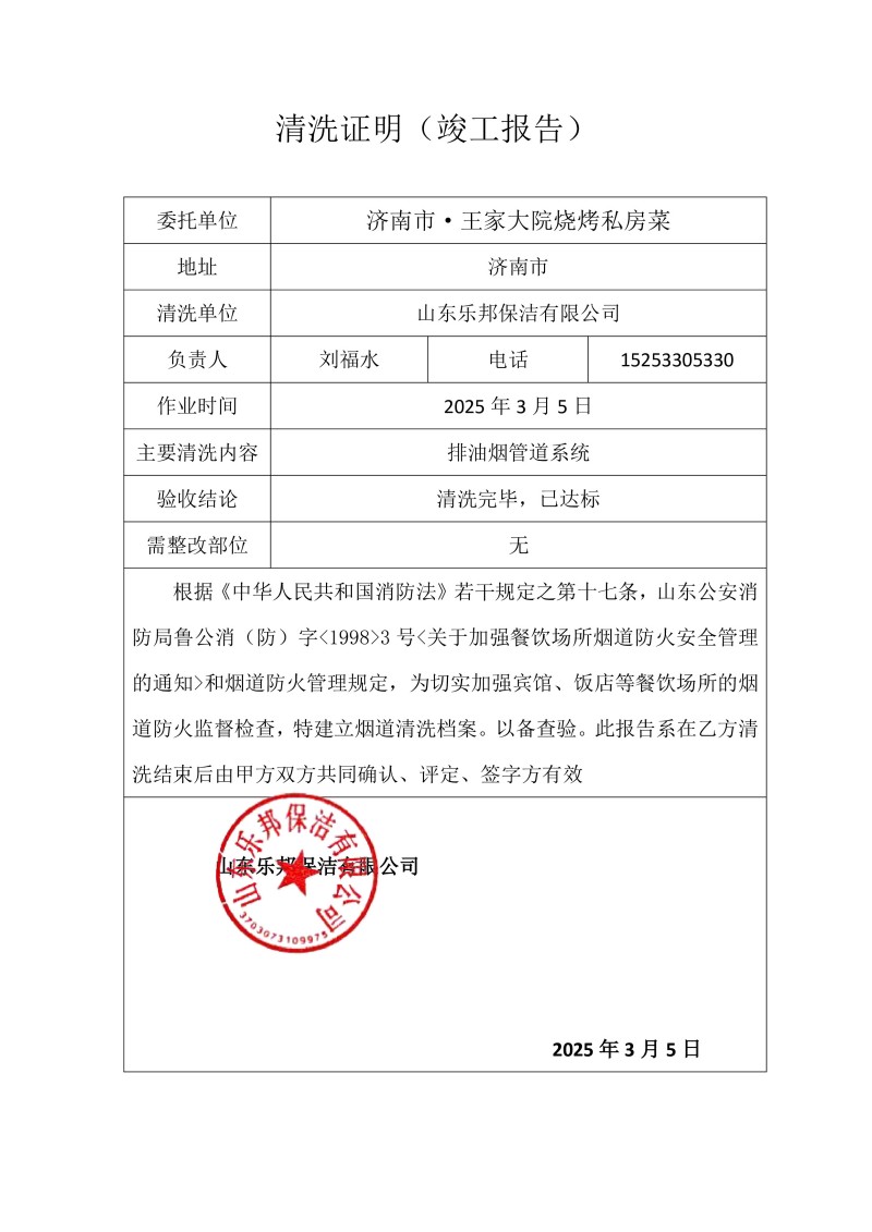 濟(jì)南市·王家大院燒烤私房菜清洗報(bào)告25.3.5