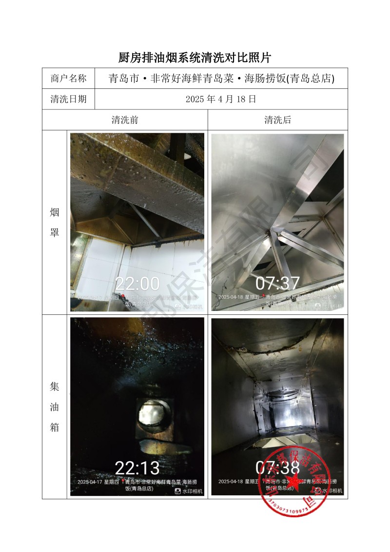 青島市·非常好海鮮青島菜·海腸撈飯(青島總店)清洗報(bào)告25.4.18