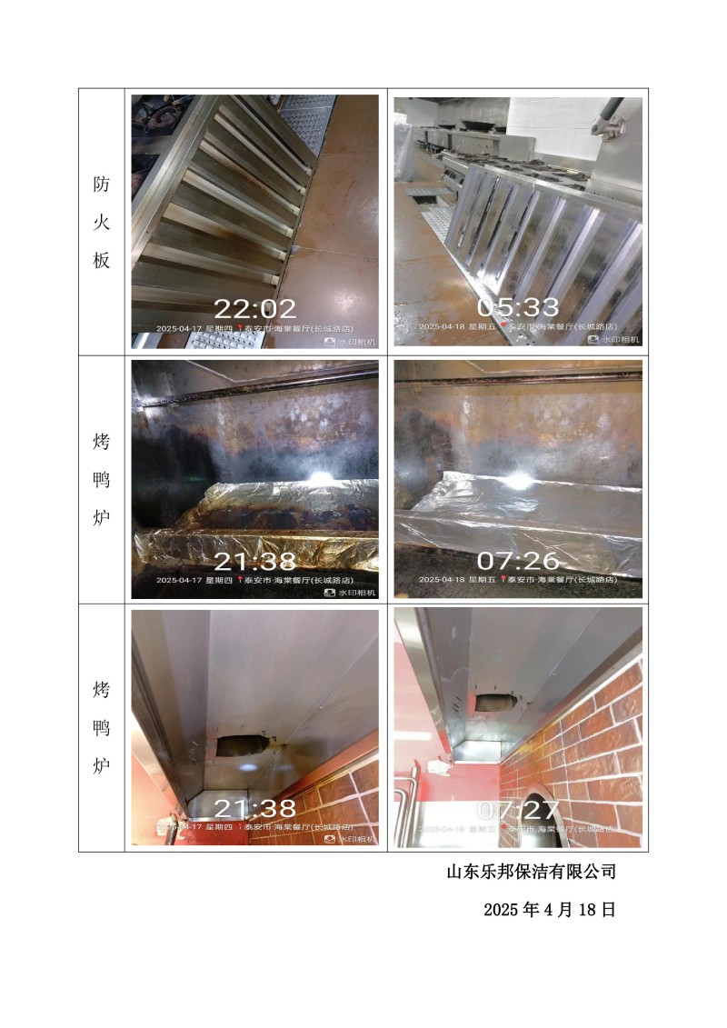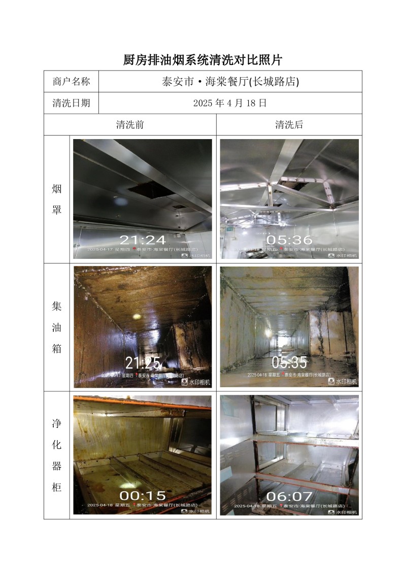 泰安市·海棠餐廳(長城路店)清洗報(bào)告25.4.18