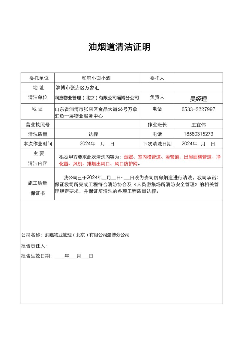 萬(wàn)象匯和府小面小酒清洗報(bào)告25.1.5