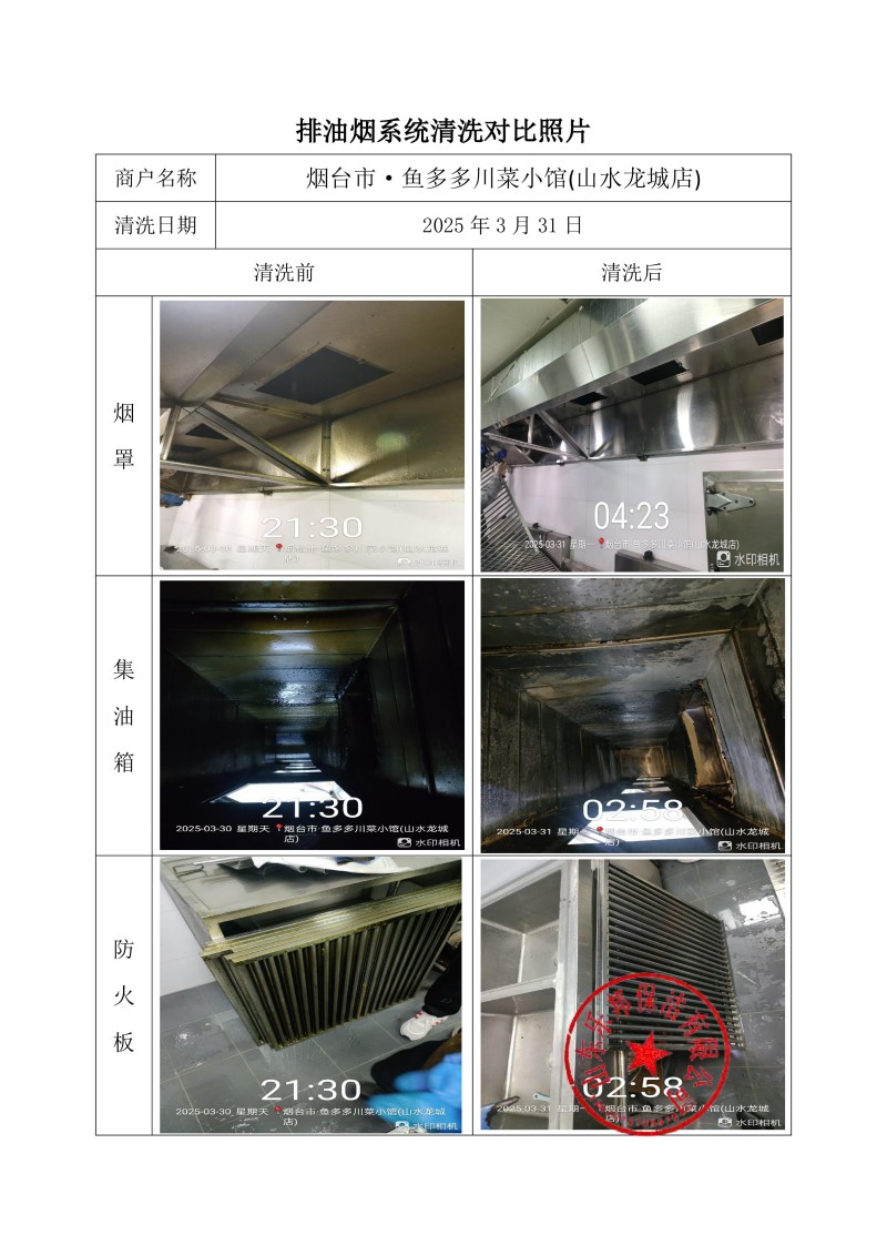 煙臺市·魚多多川菜小館(山水龍城店)清洗報告25.3.31