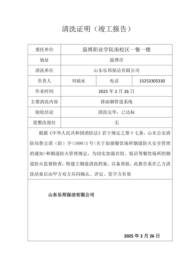 職業(yè)學(xué)院南校區(qū)堂清洗報告25.2.25