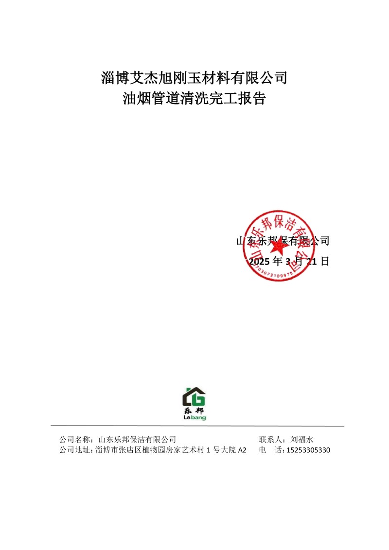 淄博艾杰旭剛玉材料有限公司清洗報告25.3.22