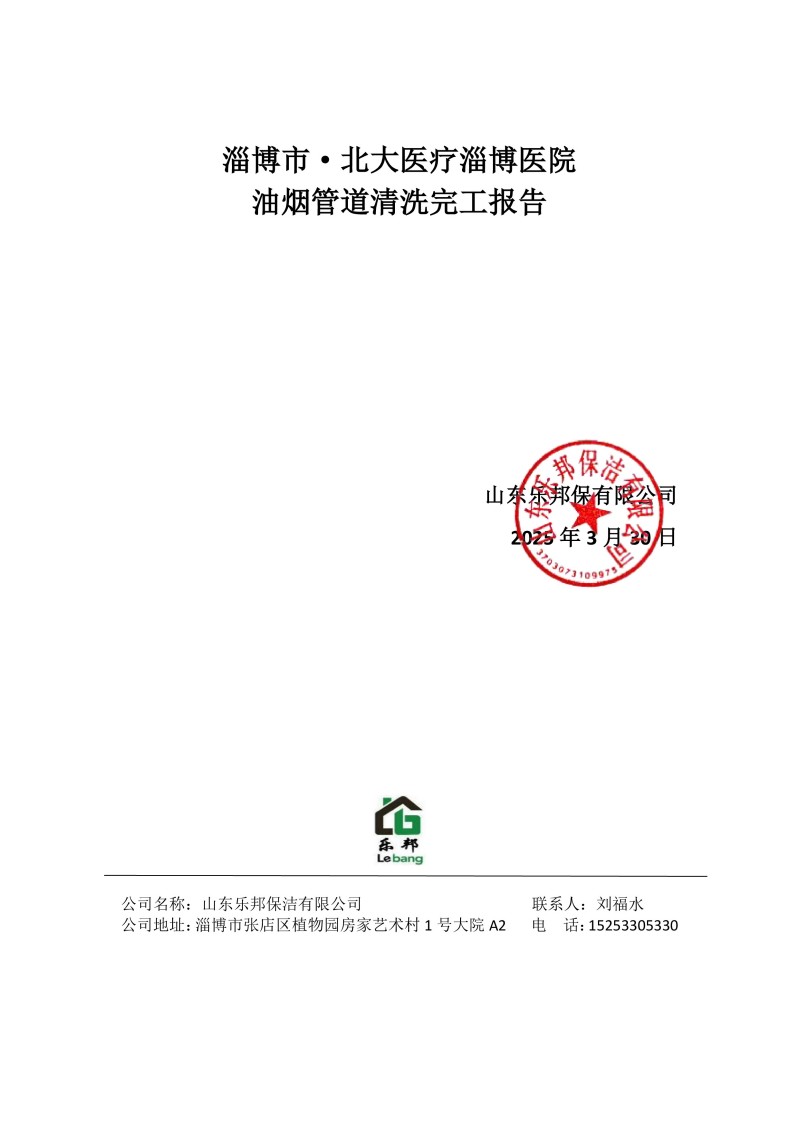 淄博市·北大醫(yī)療淄博醫(yī)院清洗報告25.3.30