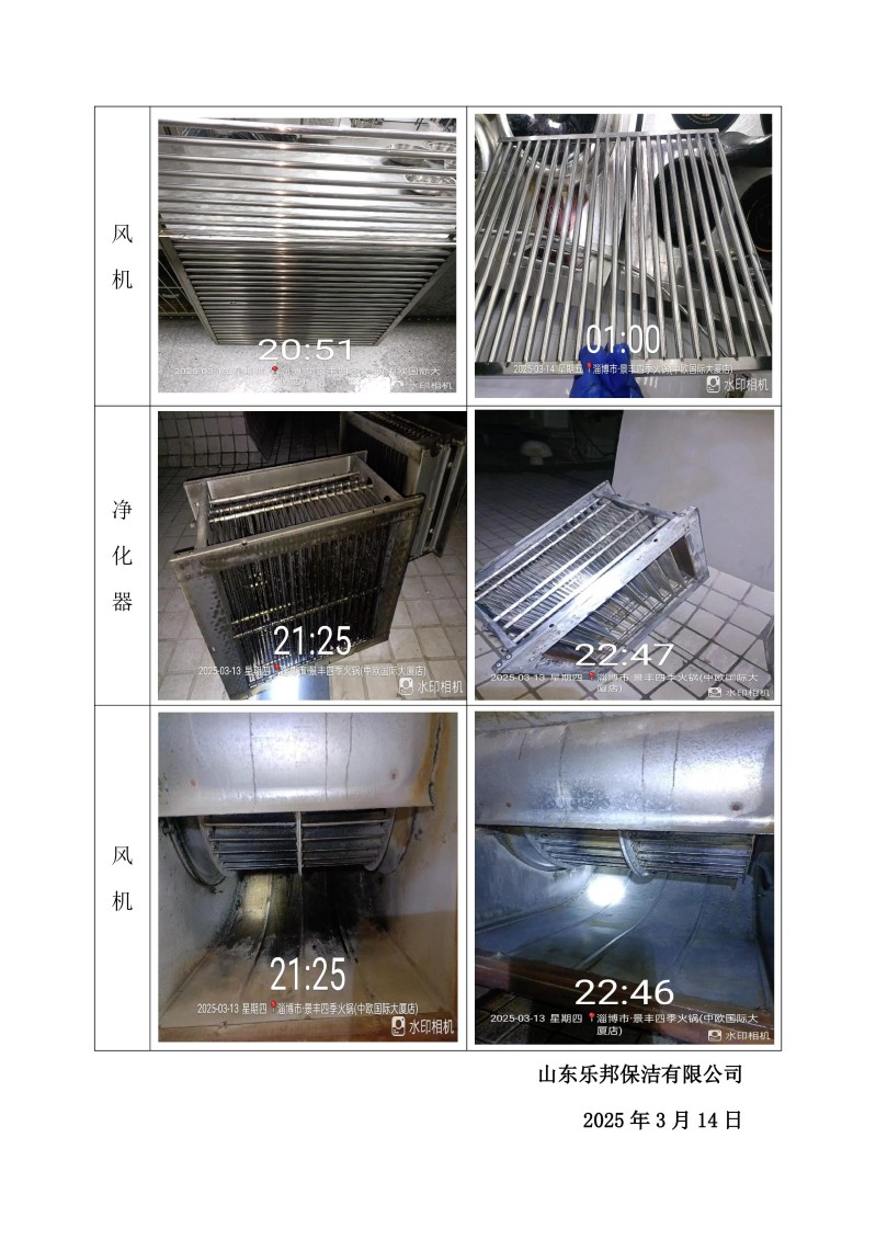 淄博市·景豐四季火鍋·融合菜(盛湖路店)清洗報(bào)告25.3.13