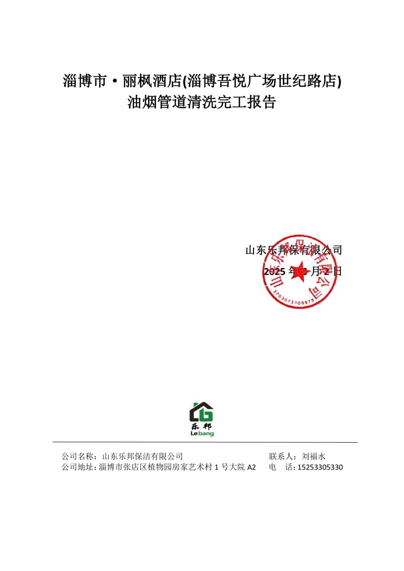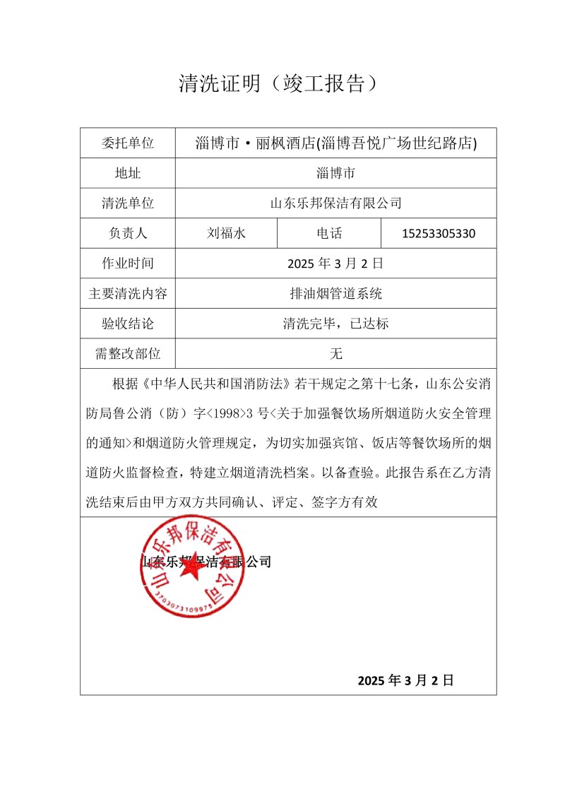 淄博市·麗楓酒店(淄博吾悅廣場世紀(jì)路店)清洗報告25.3.2