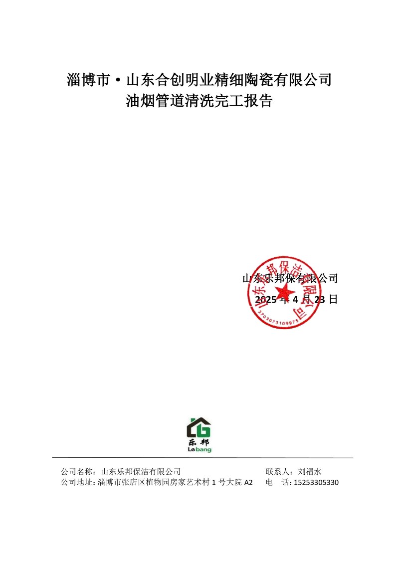 淄博市·山東合創(chuàng)明業(yè)精細(xì)陶瓷有限公司清洗報(bào)告25.4.23