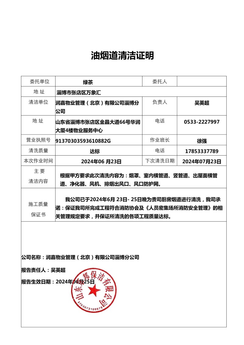鄒平市·好生街道辦事處清洗報(bào)告25.4.13