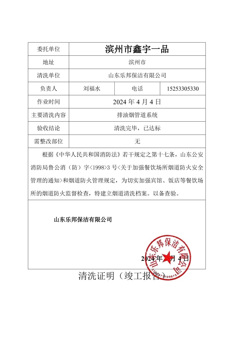濱州市鑫宇一品清洗報(bào)告24.4.6