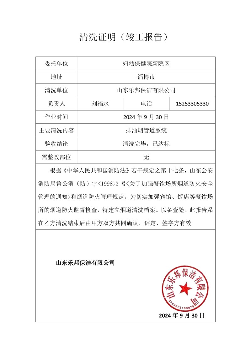 婦幼保健院新院區(qū)清洗報(bào)告24.9.29