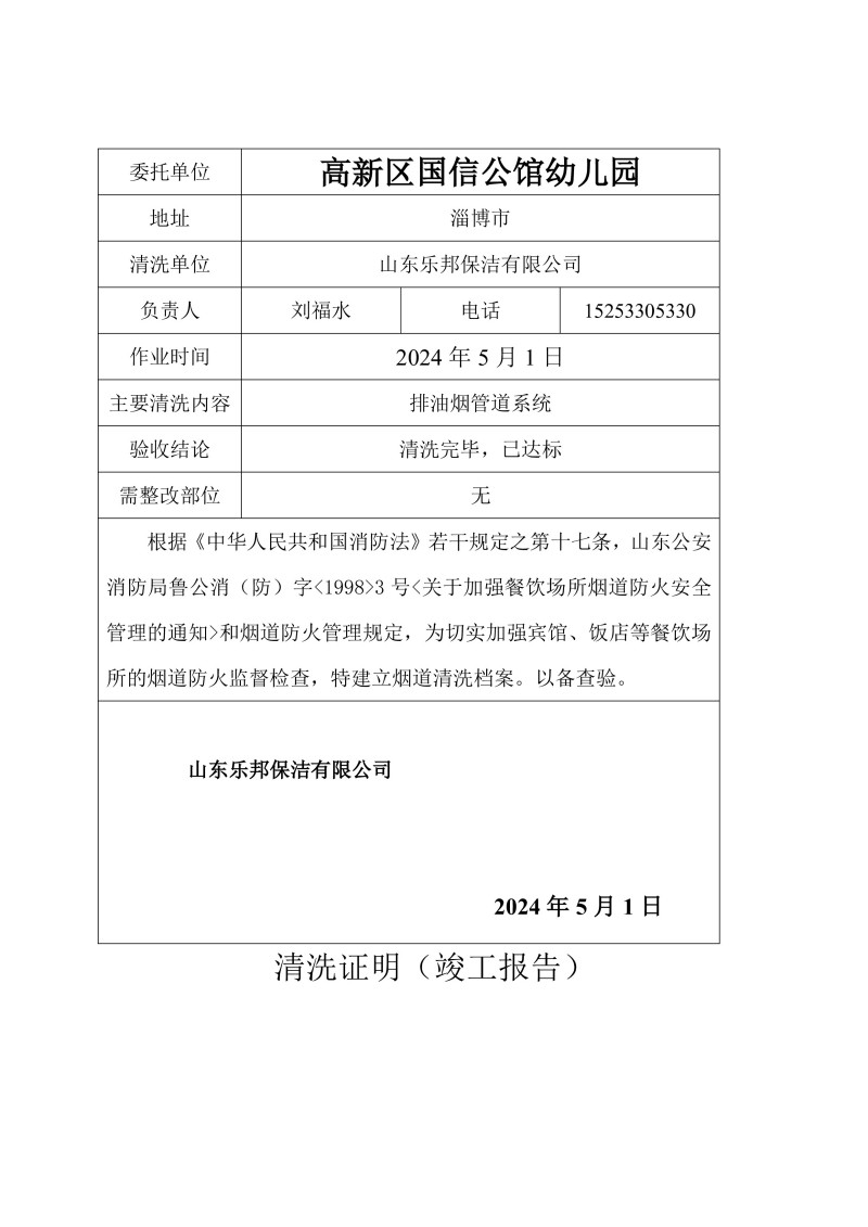 高新區(qū)國(guó)信公館幼兒園清洗報(bào)告24.5.1