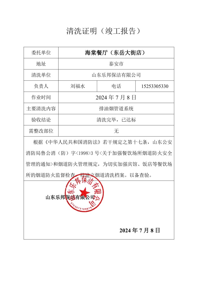 海棠餐廳(東岳大街店)清洗報告24.7.8