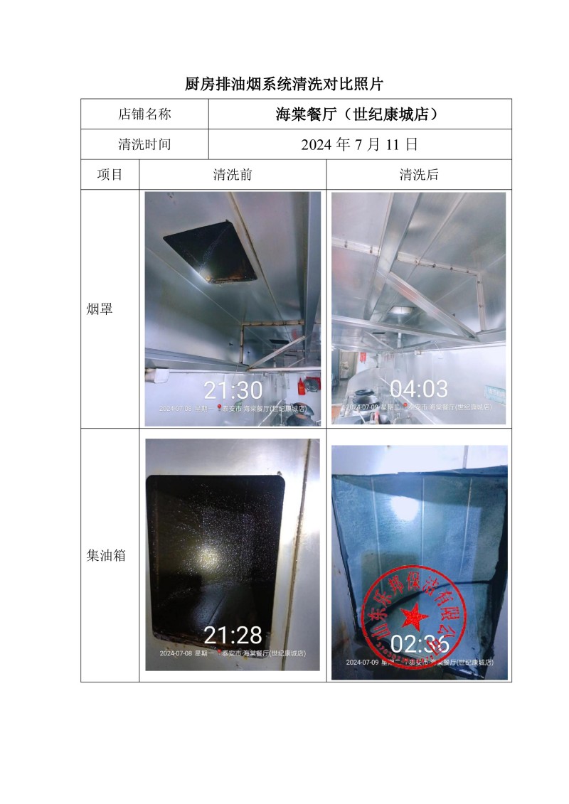 海棠餐廳(世紀(jì)康城店)清洗報告24.7.9