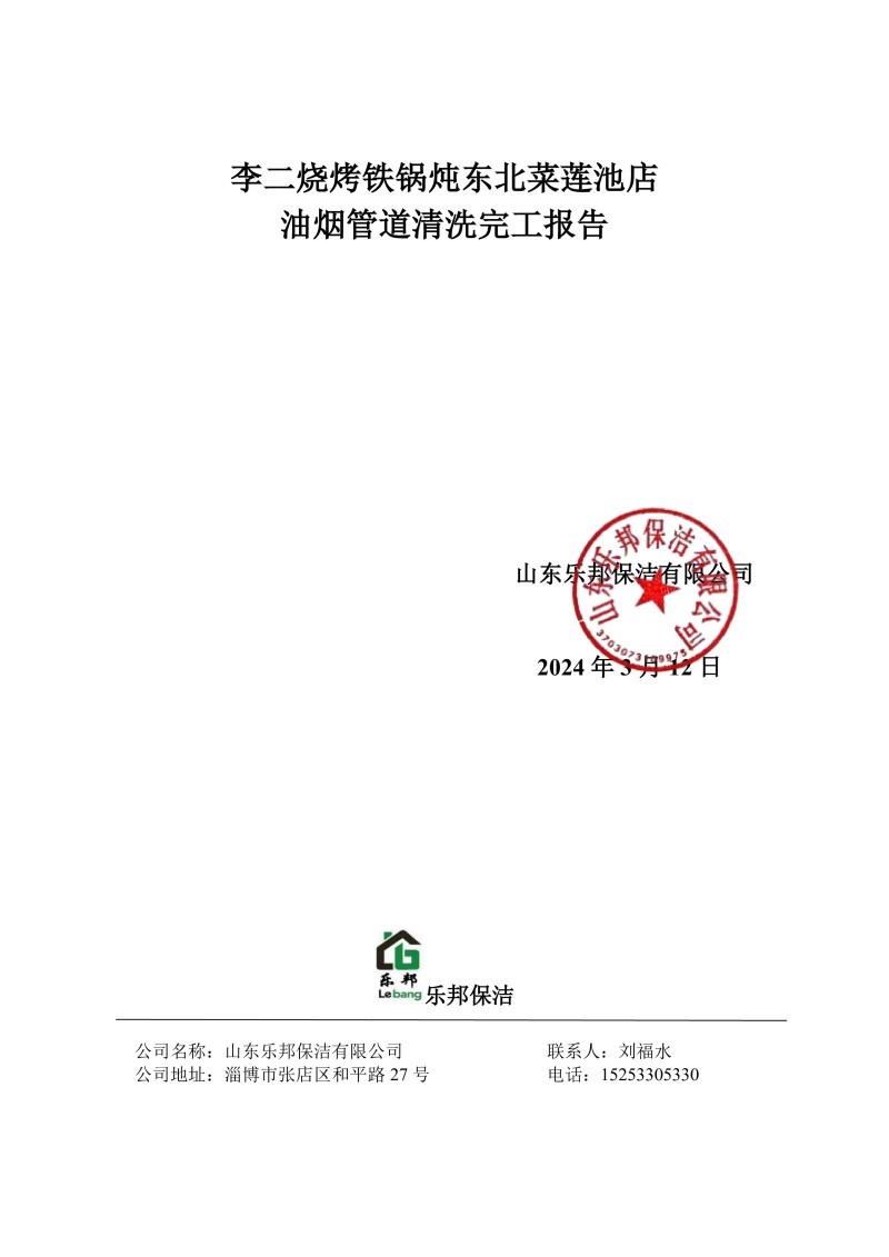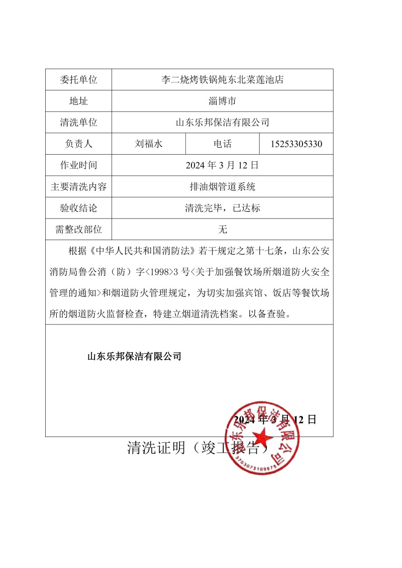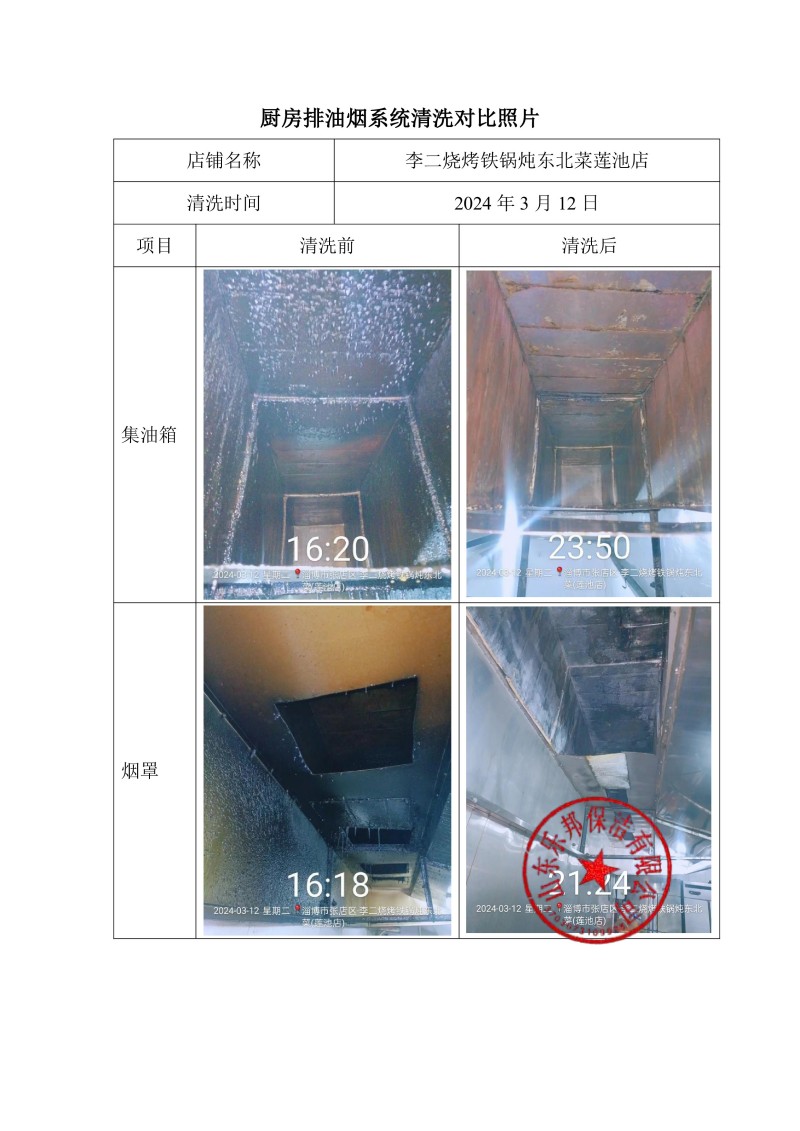李二燒烤鐵鍋燉東北菜蓮池店清洗報(bào)告24.3.12