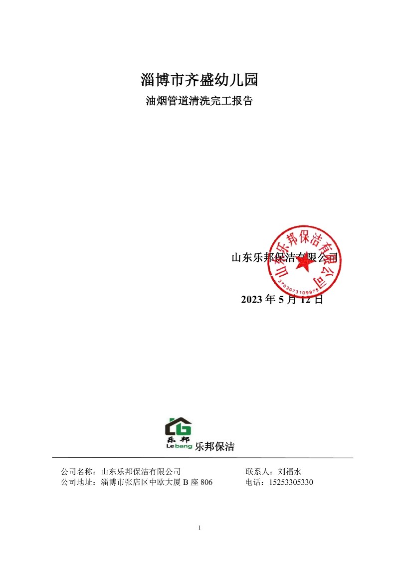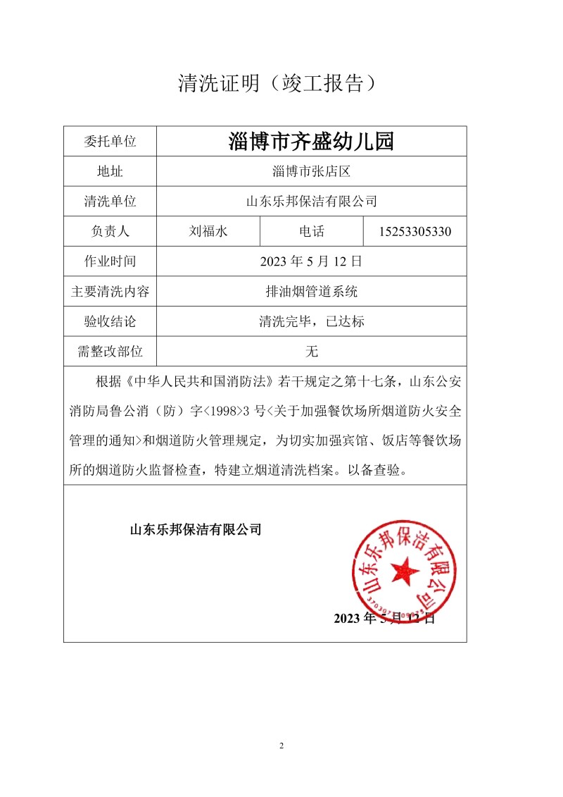 齊盛幼兒園-市直機關第一幼兒園清洗報告23.5.13
