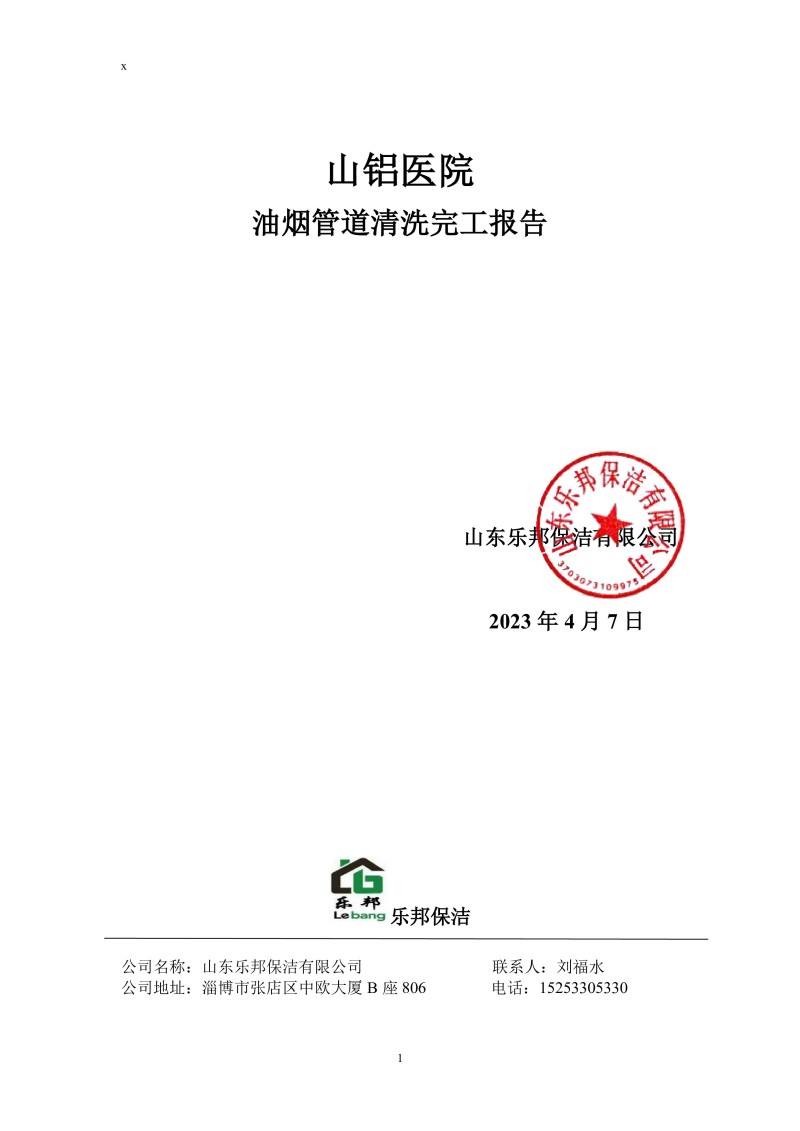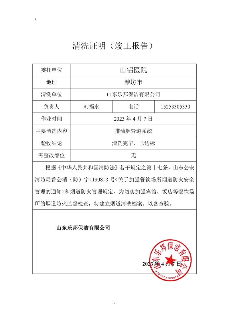 山鋁醫(yī)院清洗報(bào)告23.4.7