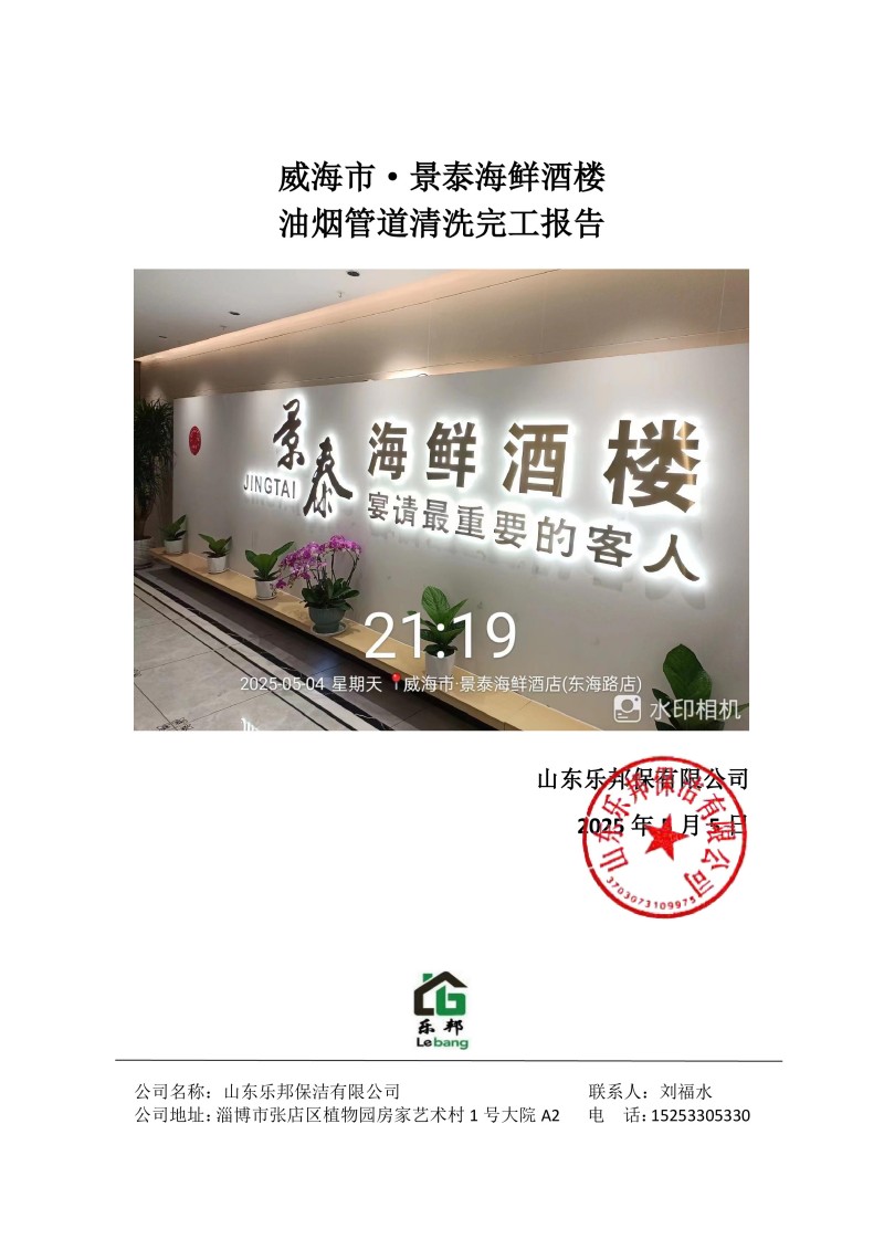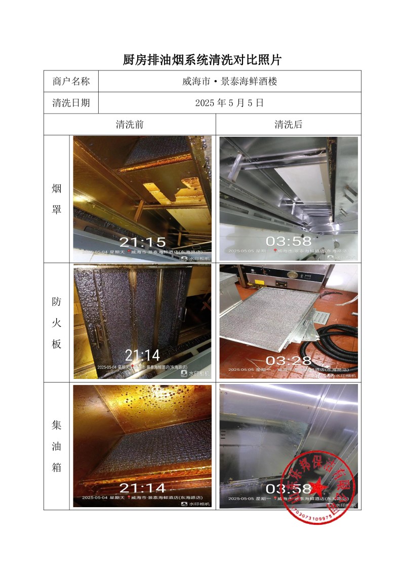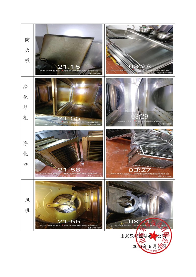 威海市景泰海鮮酒樓清洗報(bào)告25.5.5