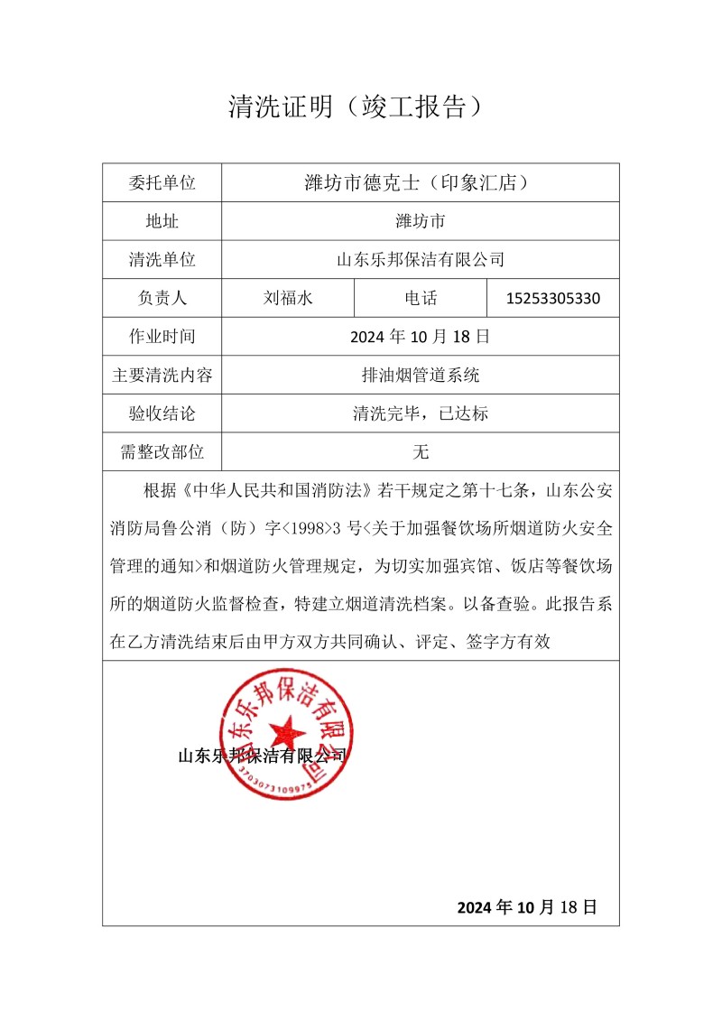 濰坊市德克士(印象匯店)清洗報(bào)告24.10.18