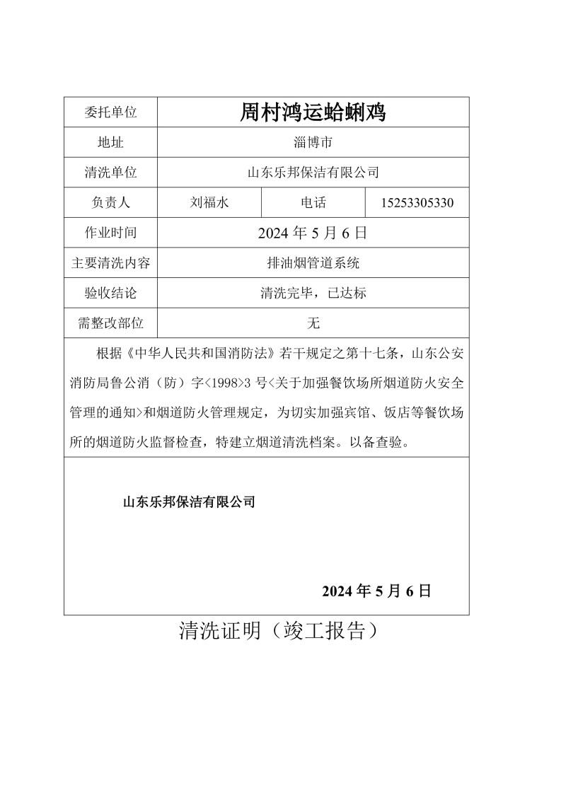 周村鴻運蛤蜊雞清洗報告24.5.6