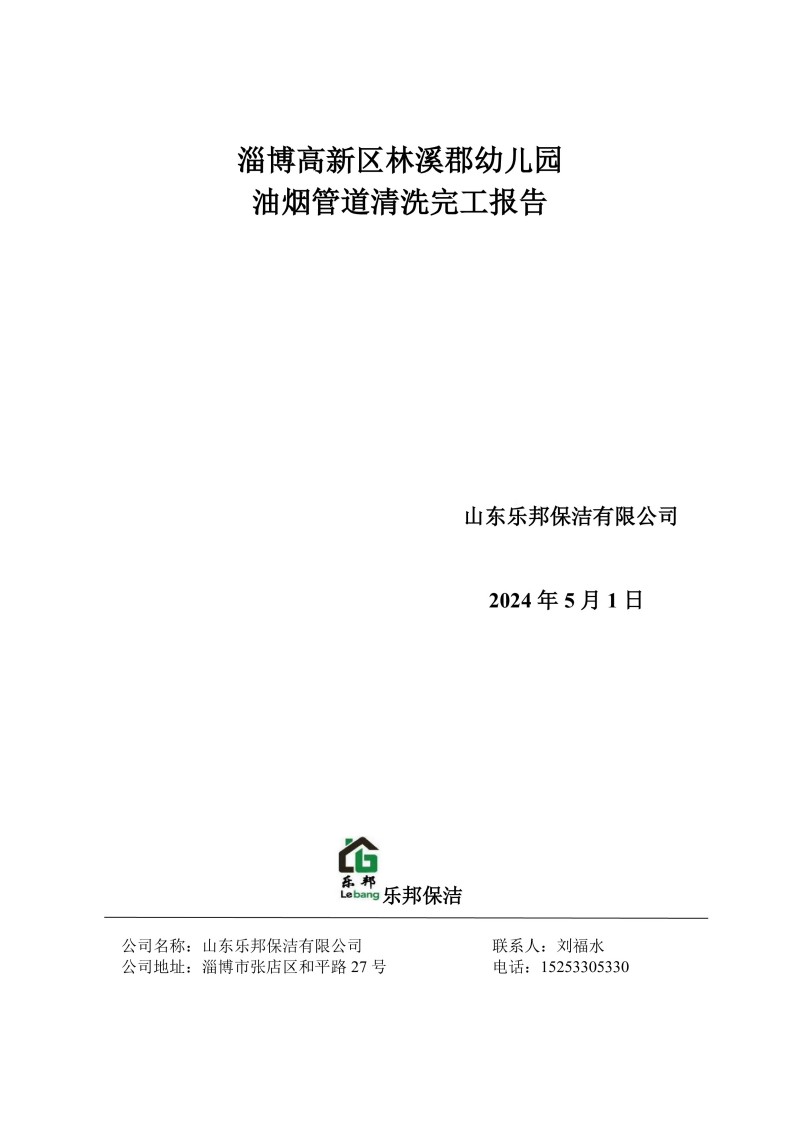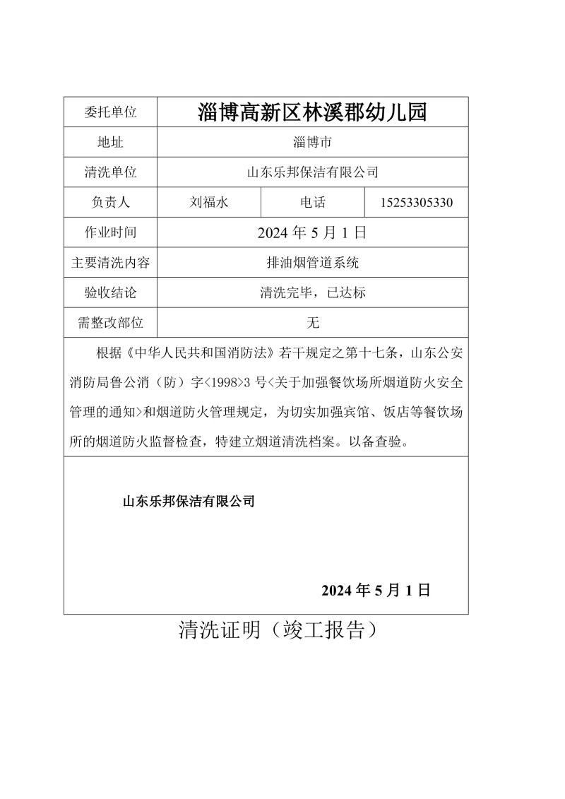 淄博高新區(qū)林溪郡幼兒園清洗報(bào)告24.5.1