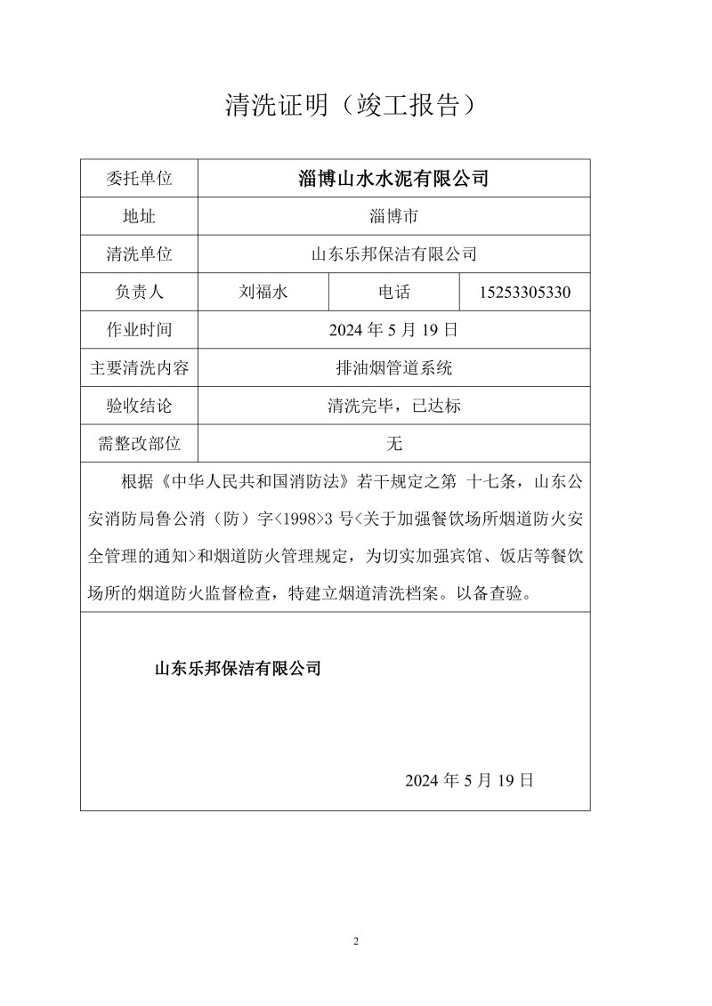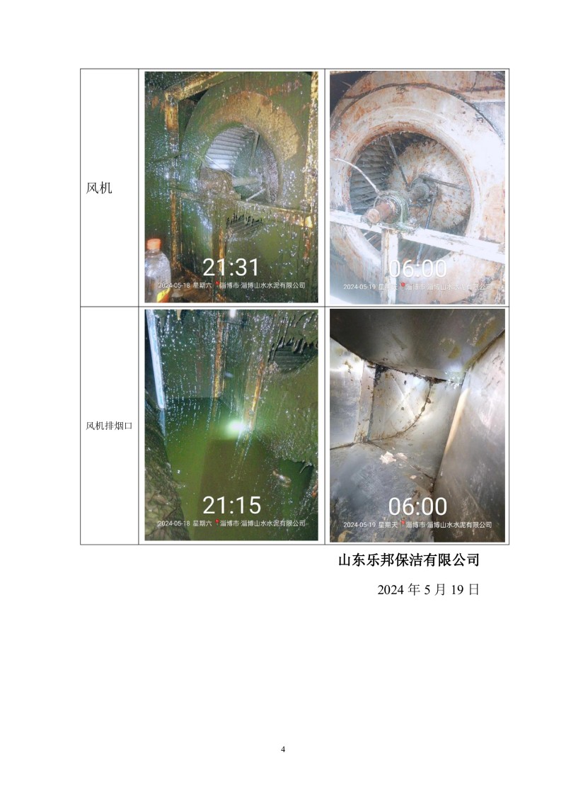 淄博山水水泥有限公司清洗報(bào)告24.5.19