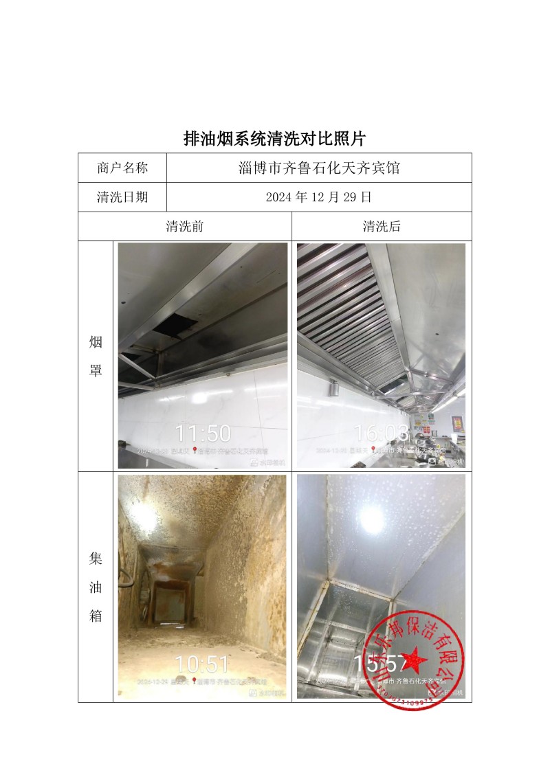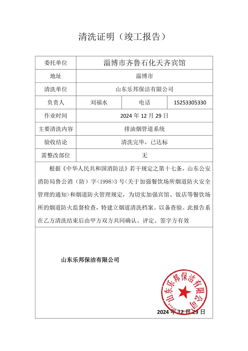 淄博市齊魯石化天齊賓館清洗報(bào)告24.12.29
