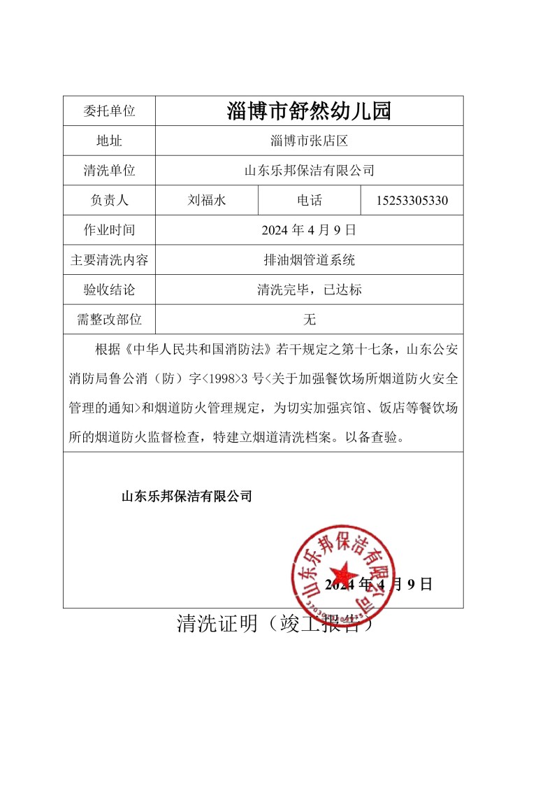 淄博市齊魯石化天齊賓館清洗報告24.12.29