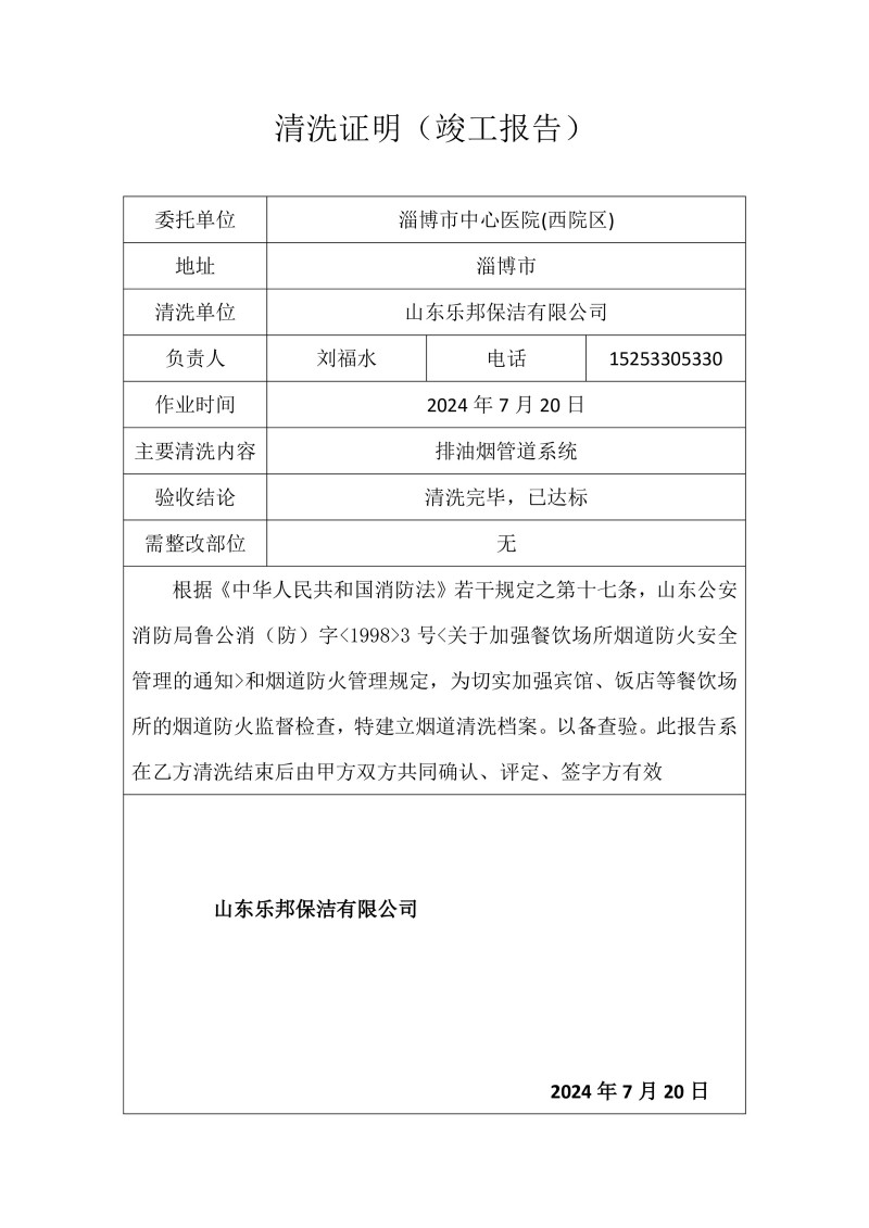 淄博市中心醫(yī)院(西院區(qū))清洗報(bào)告24.7.20